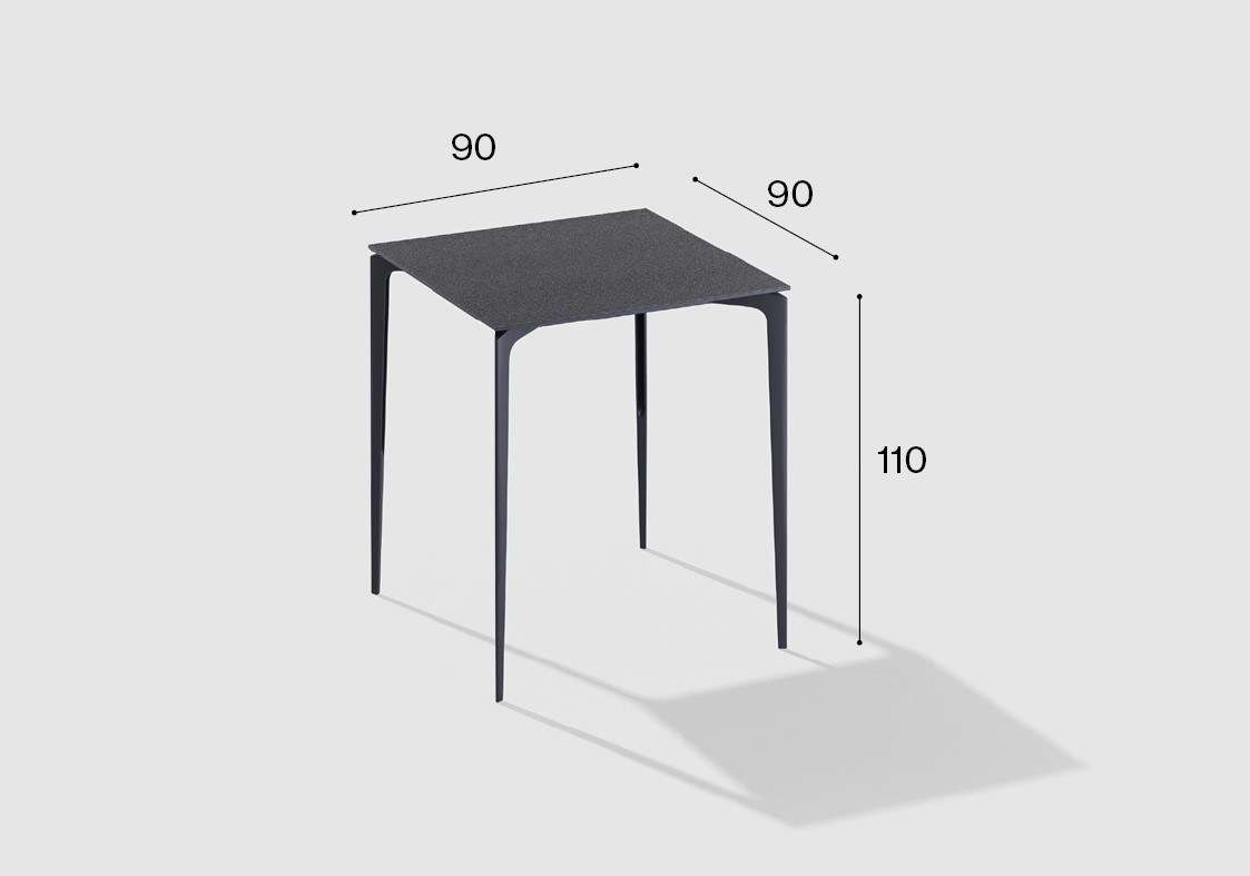 SQUARE BAR TABLE IN PAINTED ALUMINIUM WITH TOP IN SPECKLED ALUMINIUM