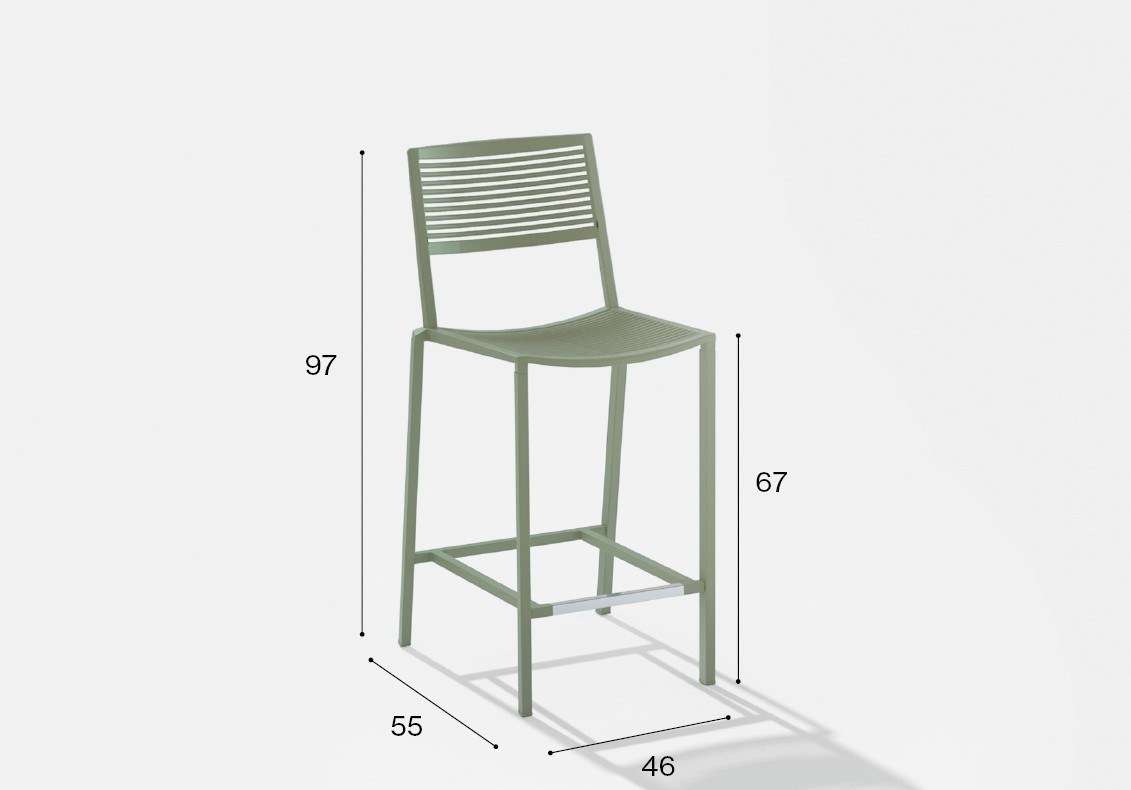 STOOL IN PAINTED ALUMINIUM WITH FOOTREST IN POLISHED STAINLESS STEEL