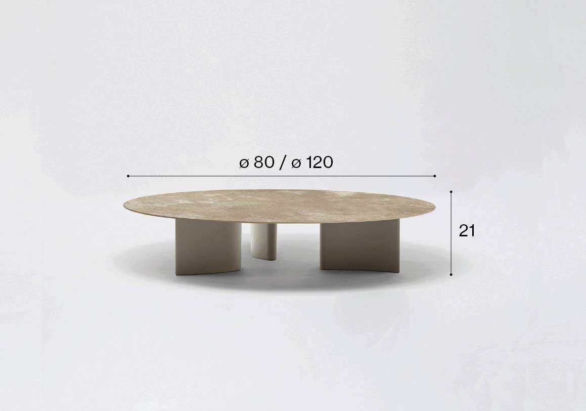 Low round table with top in porcelain stoneware ø 80 / ø 120 x h 21 cm